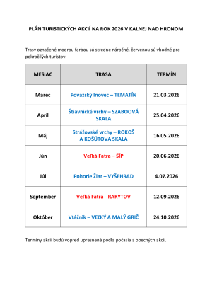 Plán turistických akcií pre rok 2026
