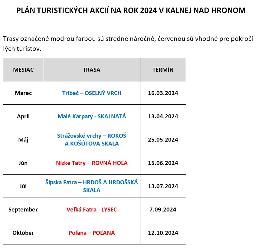 Aktualizovaný plán turistických akcií na rok 2024