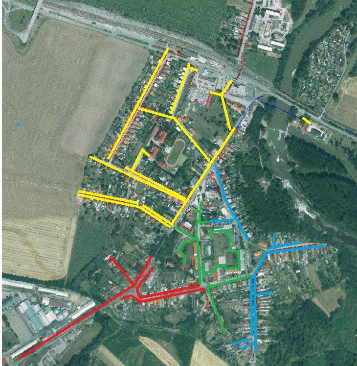 Viničná, Školská, Nová, Záhradná, Komenského, Nádražná, Červenej armády (od OcÚ po Nádražnú)